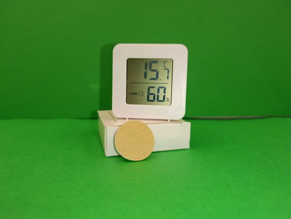Termo higrómetro de sobremesa con pilas. Para medir la humedad y temperatura. Amplio rango de medición. Trae una pegatina para poder pegarlo. Medidas del recipiente 5x5x2 cm. Color blanco. En el cultivo de setas no introducirlos dentro de mini invernaderos ni monotubs.
